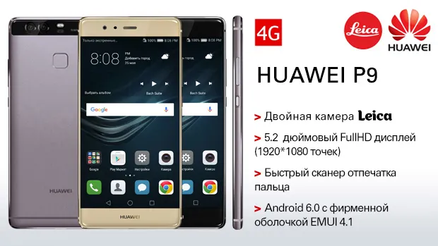 Кроме этого, Huawei P9 оснащен ультрабыстрым сканером отпечатков пальцев и новым разъемом USB Type-C, а также поддерживает мобильный интернет 4G и одновременную работу 2 SIM-карт. А функционирует модель под управлением свежей операционной системы Android 6.0 с удобной фирменной оболочкой Emotion UI 4.1.