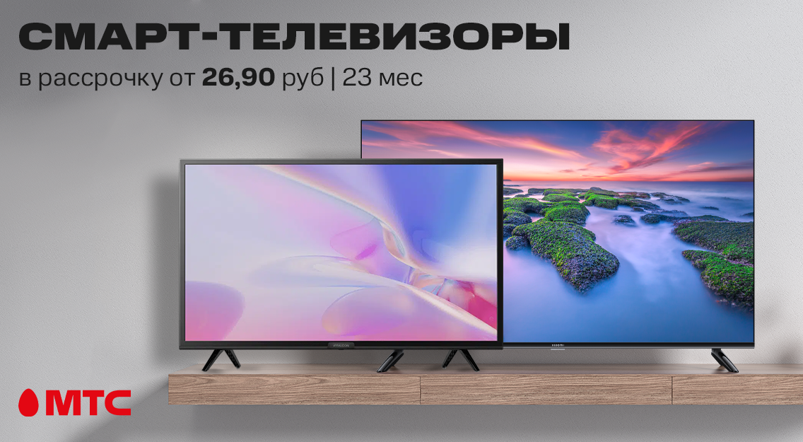 В МТС доступен большой выбор телевизоров различных брендов. Купить их можно от 26,90 рубля в месяц. Телевизоры можно оформить в расcрочку до 24 месяцев без первого взноса.